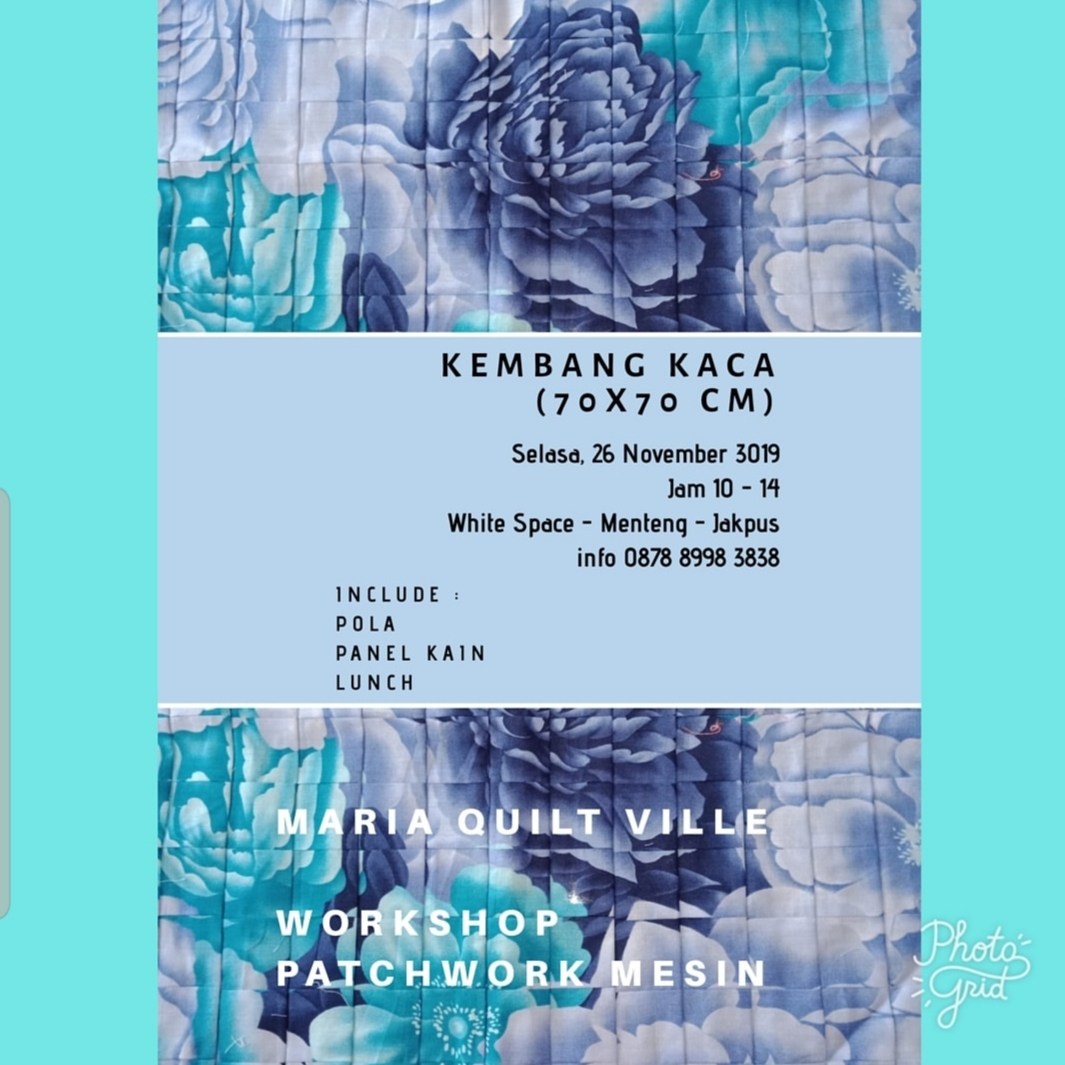 Selama durasi 5 jam, peserta akan diajarkan bagaimana cara membuat pola kembang kaca. Mulai dari membuat pola, mengukur dan memotong setiap bagian yang akan dijahit, dan menjahit semua bagian satu persatu. Ternyata jika kita mengetahui tekniknya dengan benar, membuat quilt dengan pola kembang kaca tidak sesulit yang pertama dibayangkan. Namun memang dibutuhkan ketelitian dan kemampuan dalam menggunakan mesin jahit. Target jahitan yang harus diselesaikan peserta selama workshop adalah 70 x 70 cm. Sisa jahitan dan bahan dapat diselesaikan oleh peserta dirumah masing-masing. Menurut Kak Maria, untuk membuat quilt dengan motif ini membutuhkan waktu sekitar 20 jam hingga selesai. Namun hasilnya memang cantik sekali jadi perjuangan para peserta tentunya tidak sia-sia.