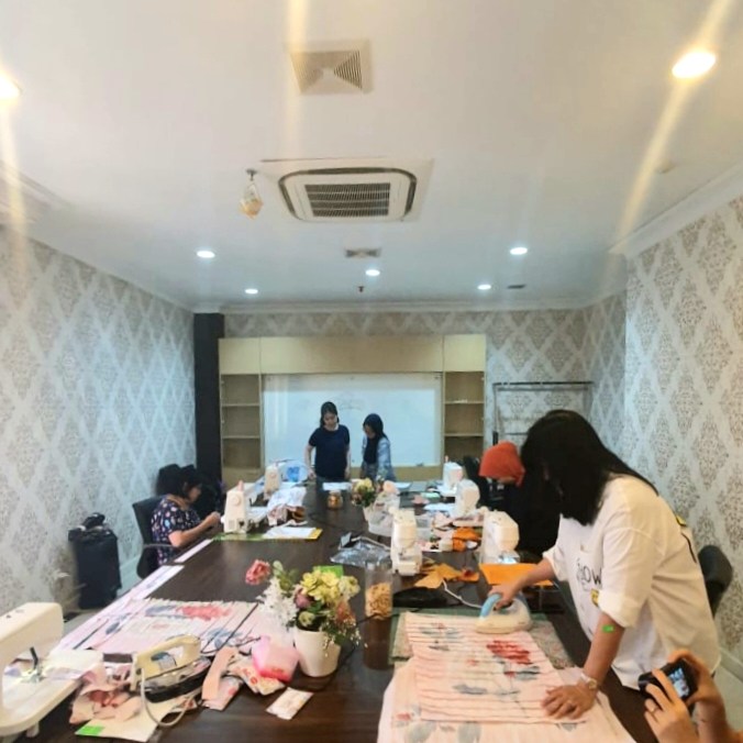 Jadi workshop kali ini diadakan oleh Mocca Craft Studio bekerja sama dengan Kak Maria dari Maria Quilt Ville. Mocca Craft Studio sendiri didirikan oleh Ibu Tanti dan Ibu Tanti ini adalah salah satu anggota inti dari komunitas Benang Merah yang merupakan komunis kerajinan tangan, khususnya kerajinan tangan yang menggunakan jarum dan benang. Workshop diadakan di White Space Menteng, pada tanggal 26 November 2019 kemarin. Durasi workshop sekitar 5 jam, dari pukul 10.00 hingga 14.00 dengan 1 jam toleransi waktu untuk menyelesaikan jahitan. Untuk peserta workshop kali ini diikuti oleh 6 peserta.