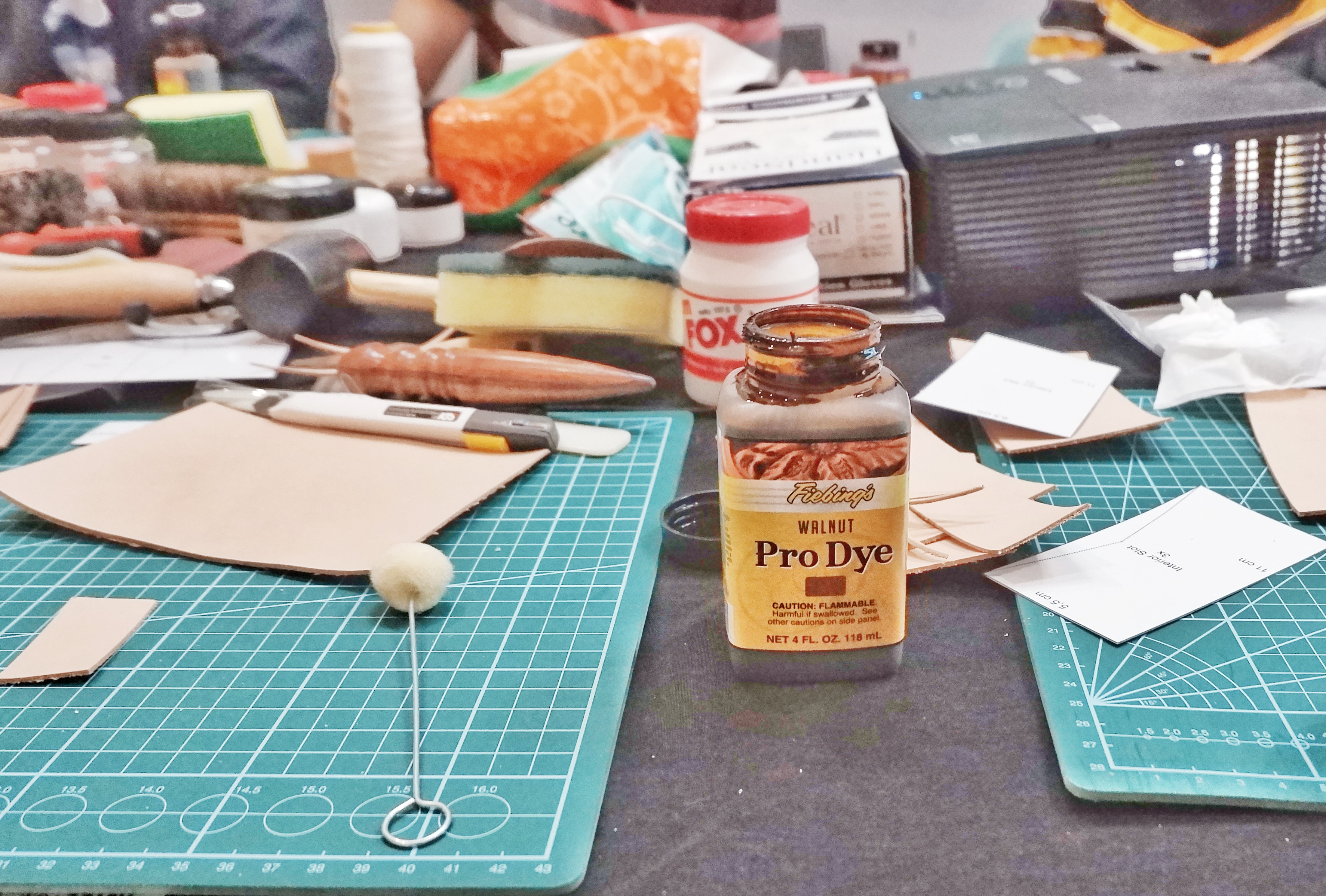 Selanjutnya peserta akan diajarkan bagaimana cara mewarnai kulit yang sudah dipotong. Kak Malik menyediakan 3 warna yang bisa digunakan sehingga peserta dapat memilih warna sendiri. Kemudian untuk menyatukan seluruh bagian dari cardholder ini, peserta akan diajarkan merapihkan potongan dan membuat lubang jahit. Jadi cara menjahit dompet dari kulit itu berbeda dengan teknik menjahit kain, walaupun sama-sama menggunakan jarum dan benang. Walaupun workshop kali ini tergolong sulit, tetapi seluruh peserta dapat menyelesaikan produk masing-masing dengan tepat waktu.