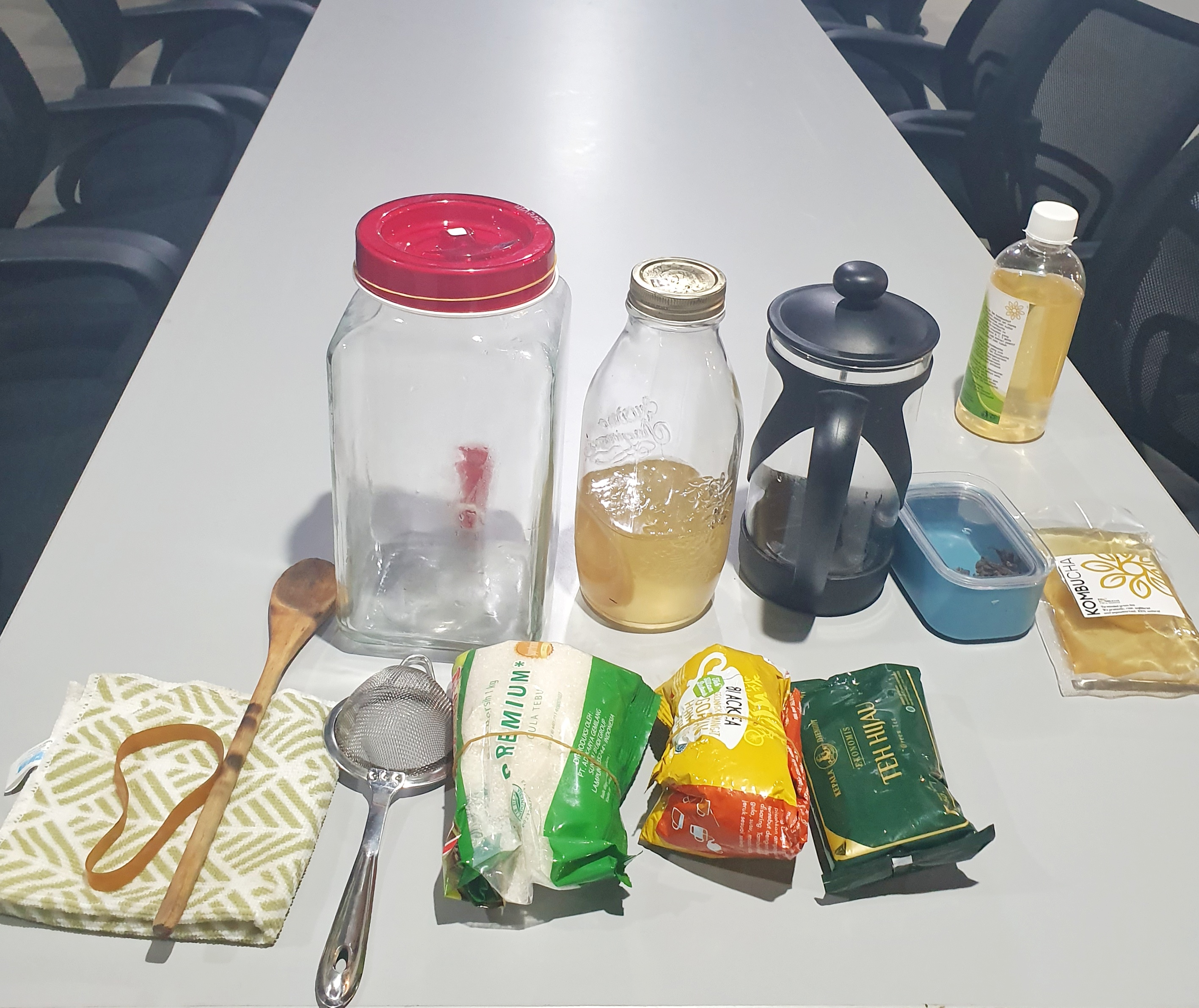 Proses pembuatannya sebenarnya cukup mudah, namun menentukan tempat fermentasi dan proses menjaga lingkungan fermentasi teh kombucha ini yang lumayan sulit. Sepertinya akan susah menemukan sudut yang ideal untuk membuat teh kombucha di rumah, apalagi apartemen dengan lahan yang sangat terbatas. Namun setiap peserta diberikan starter kit berupa 1 buah scoby dengan diameter kita-kira 10cm agar peserta dapat lebih semangat untuk mencoba dirumah. Sesuatu yang bagus biasanya memang membutuhkan perjuangan. Selain itu, masing-masing peserta mendapatkan 1 botol teh kombucha yang sudah siap diminum dan kertas berisi petunjuk untuk membuat teh kombucha.