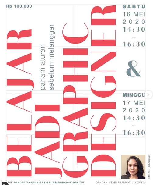 Untungnya berbagai macam kelas online untuk mempelajari desain grafis dasar sudah banyak tersedia. Salah satunya adalah kelas online yang diadakan oleh Kak Utari Syaukat dari Causelab.co. Kak Utari adalah seorang profesional di bidang desain grafis yang sudah berpengalaman lebih dari 14 tahun. Salah satu tim dari KelasHobi mengikuti kelas yang diadakan Kak Utari bulan Mei 2020 kemarin. Seperti apa ceritanya?
