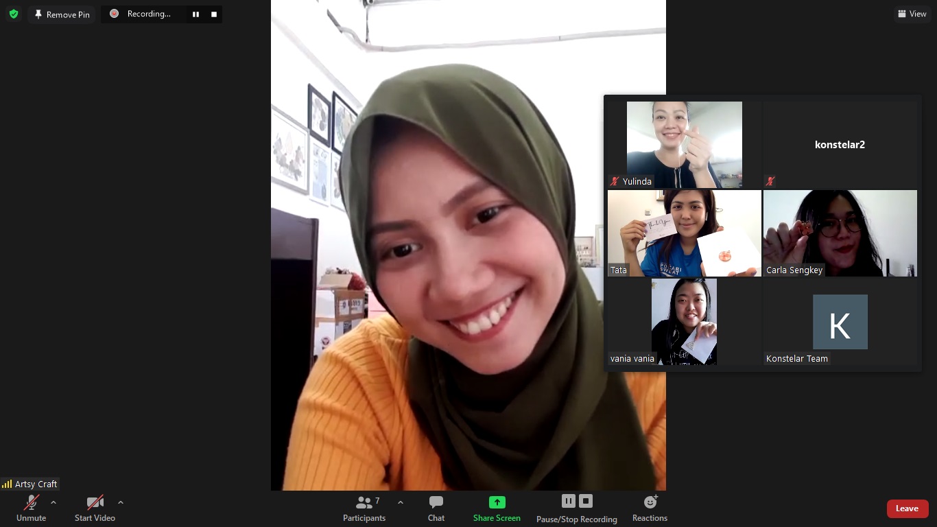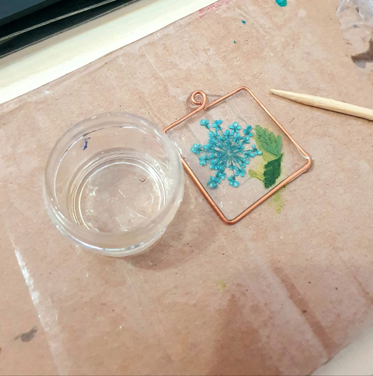 Saat kelas ZOOM dimulai, peserta akan diberikan waktu berdiskusi dengan pengajar sebelum masuk ke dalam sesi praktek. Dalam sesi praktek, pertama, peserta akan diberikan waktu untuk memilikih desain pendant yang diinginkan. Peserta juga akan diberikan prosedur penggunaan resin yang benar. UV resin memiliki sifat cepat kering saat terkena cahaya matahari atau sinar UV sehingga sangat dianjurkan untuk praktek ditempat yang teduh agar cairan UV resin yang belum terpakai tidak cepat mengeras. Namun peserta tetap membutuhkan cahaya matahari saat mengerjakan bandul resin, karena dalam proses pembuatan bandul kalung, resin harus dituang atau dioleskan selapis demi selapis, dan setiap lapisannya harus kering dahulu sebelum ditambahkan lapisan yang baru.